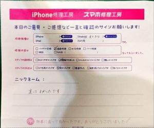 iPhone修理工房港北TOKYU S.C店/Rakuten BIGの画面交換修理でお越しのお客様から頂いた口コミ