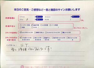 今回はiPhone8の画面修理でご来店されたS.T様からのお声をご紹介します!