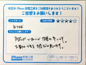 【iPhone7の画面修理でお越しの白うさぎ様からの評価】