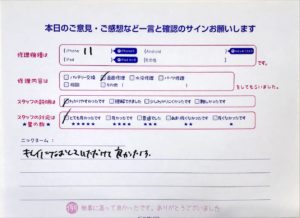 今回はiPhone11の画面修理でご来店されたお客様からのお声をご紹介致します。