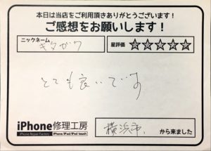 iPhone修理工房港北TOKYU S.C店 ・ 横浜市からお越しのお客様から頂いた口コミ