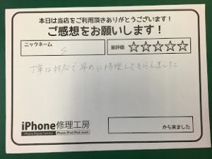 iPhone修理工房港北TOKYU S.C店・iPhone修理でお越しのお客様から頂いた口コミ