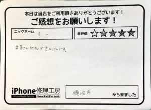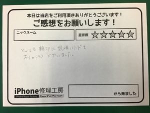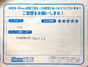 【iPhone6のバッテリー交換でお越しのミヤ様から頂いたお声】