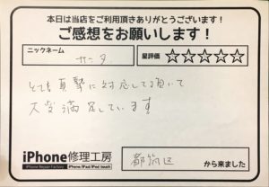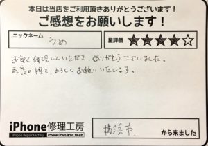 iPhone修理工房 港北TOKYUS.C店/iPhone6Sのバッテリー交換のお客様から頂いた口コミ