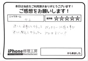 【iPhone6Sのバッテリー交換でお越しのお客様】